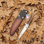 EL ALMA DE LA PIEZA Pequeño cuchillo de campo forjado íntegramente a mano a partir de acero de ballesta (muelle de vehículo). Ha sido tratado térmicamente con temple en aceite y revenido para garantizar un equilibrio óptimo entre dureza y tenacidad.
