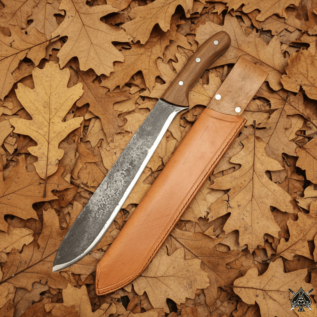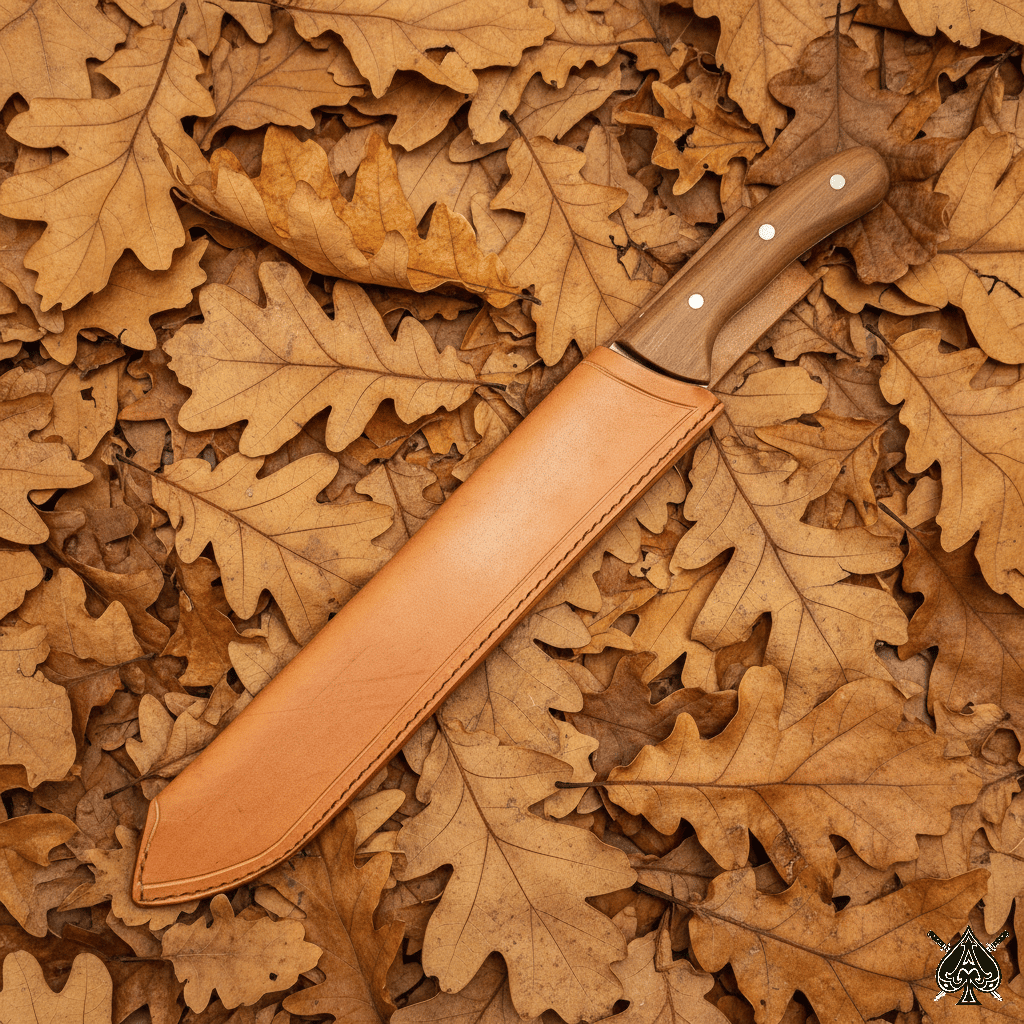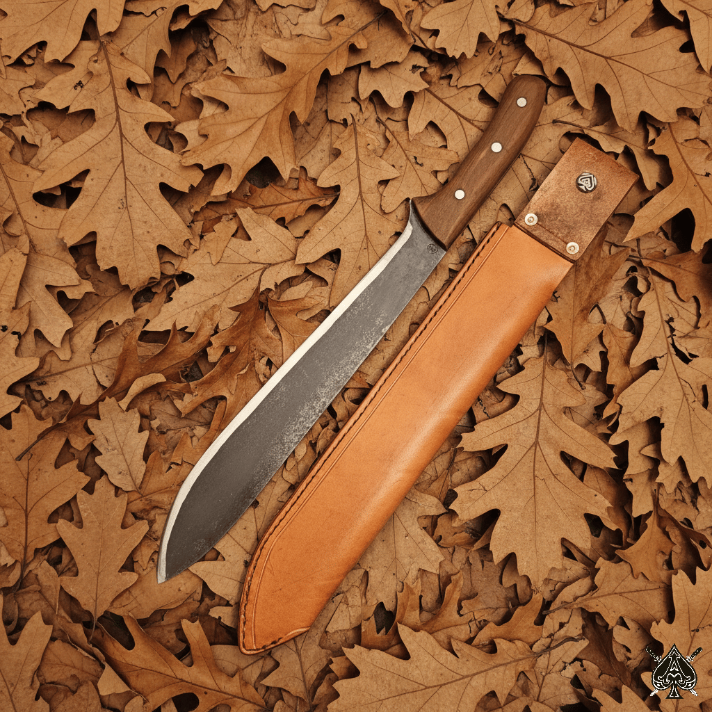 EL ALMA DE LA PIEZA: Machete para poda y procesado de madera, forjado a mano desde disco industrial de corte, tratado térmicamente con temple en aceite y revenido para garantizar dureza y tenacidad.